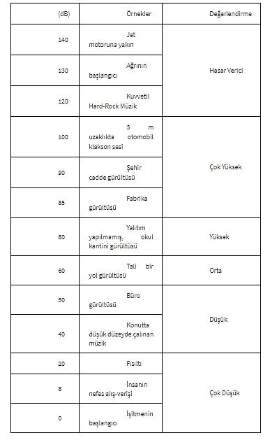 Bazı Ses Kaynaklarının (dB) Değerleri